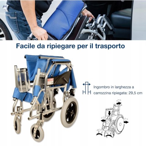 Aluminiowy wózek inwalidzki GIMA Queen jasnoniebieski 46 cm lekki 9,5 kg