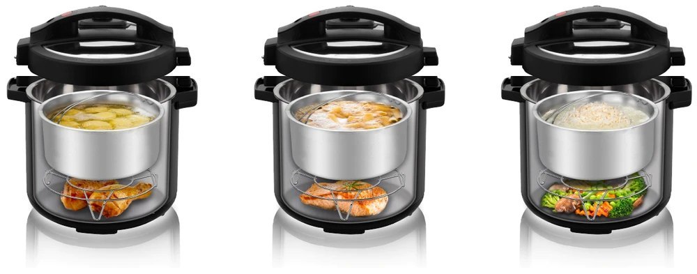 wielofunkcyjna frytkownica na gorące powietrze do pieczenia, garnek ciśnieniowy, garnek do powolnego gotowania, garnek do gotowania ryżu, jogurt, urządzenie do gotowania jajek, podgrzewacz do jedzenia, patelnia do smażenia lub pieczenia, garnek do gotowania na parze, pojemnik do sterylizacji, garnek do przygotowywania duszonego mięsa, wyjmowany garnek wewnętrzny wykonany jest z wysokiej jakości stali nierdzewnej – nadaje się do mycia w zmywarce