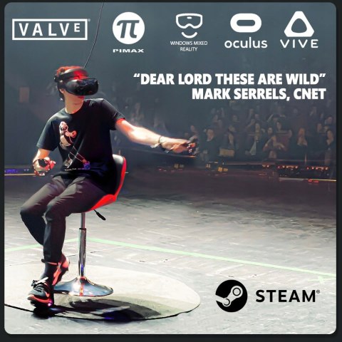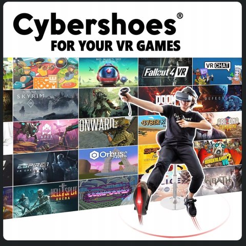 Cybershoes są przypięte bezpośrednio do twoich stóp, a siedząc na swoim Cyberchair, możesz rozpocząć swoją przygodę z VR. Cybershoes są kompatybilne z wieloma grami VR i bezpośrednio zintegrowane ze SteamVR. Pobierz swoją ulubioną grę VR, włącz Cybershoes i po raz pierwszy poczujesz się, jakbyś eksplorował starożytne ruiny krasnoludów lub uciekał przed hordą nieumarłych.