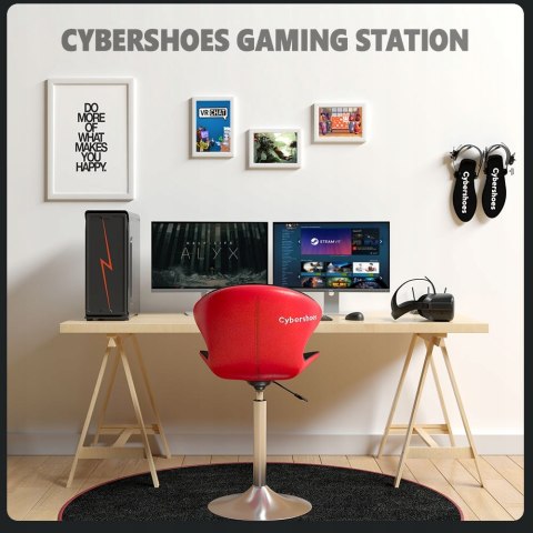 Dzięki Cybershoes Gaming Station masz pełną konfigurację do wejścia do swoich ulubionych gier! Czy łączy nas to samo marzenie z dzieciństwa, aby wejść do gier wideo? Teraz możemy! Mając Cybershoes na nogach, nosisz buty swojej ulubionej postaci z gry.