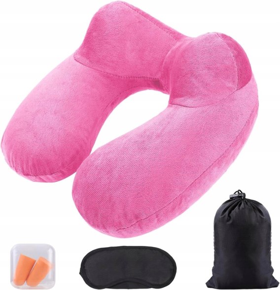 DMUCHANA PODUSZKA PODRÓŻNA NA SZYJĘ W KOLORZE RÓŻOWYM r. L