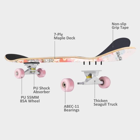 różowa, łożyska ABEC-11, kanadyjskie drewno klonowe