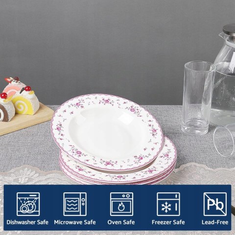 Zestaw talerzy do zupy został zaprojektowany z różową obwódką, a talerz otoczony jest różowymi kwiatami. Po umieszczeniu jedzenia na talerzu fanquare, wyglądając elegancko i wykwintnie. Delektując się jedzeniem, spędź również miło czas z rodziną.