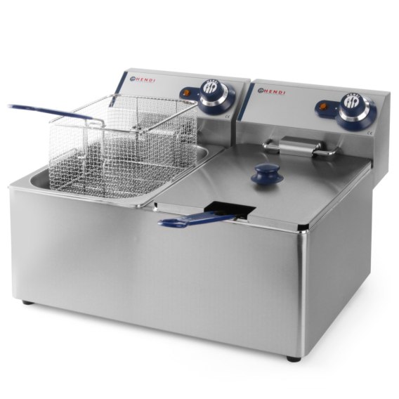 Frytownica z serii Blue Line marki Hendi o pojemności 2x8 l. Prezentowany model rekomendowany jest do mniejszych punktów gastronomicznych.
