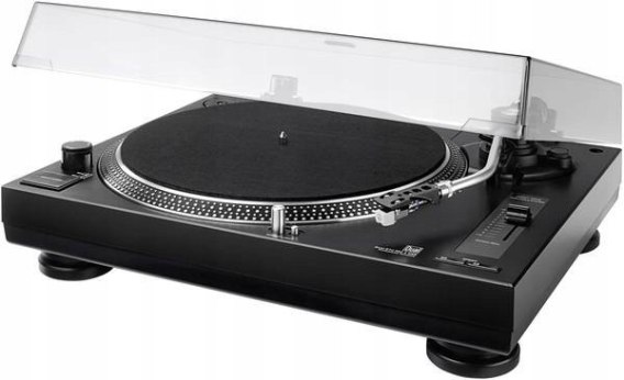 Gramofon ze złączem USB sterowany kwarcowy napęd bezpośredni. Czas rozruchu < 1 sek. Prędkość obrotowa w obr./min: 33/45, 8-porowaty, 2-fazowy silnik prądu stałego z elektronicznym hamulcem. Kontrola pitch: +/-10%.