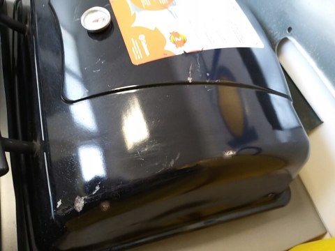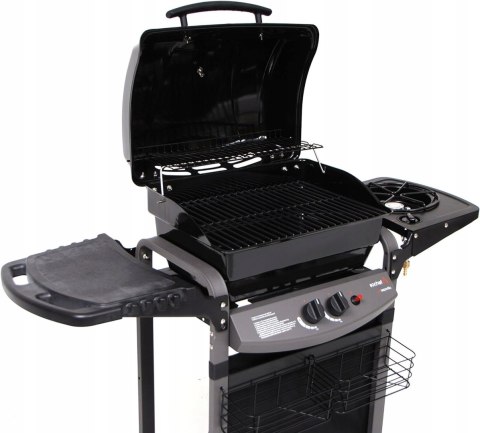 Łatwy do przenoszenia, wyposażony w rozkładaną półkę boczną, ponadto zawiera pokrywę butli z gazem i kosz do przechowywania.