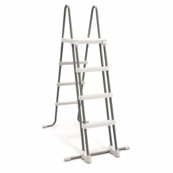 Wysokiej jakości drabinka basenowa o wysokości 122cm. Może być swobodnie wykorzystana do wszystkich basenów Intex o wysokości do 122cm, ale nadaje się także do niższych basenów choć stworzy tym samym wysokie podejście. Drabinka została wykonana z metalu, który jest odpowiednio zabezpieczony przed korozją. Stopnie to bardzo twarde tworzywo sztuczne, w pełni antypoślizgowe. Drabinka ma wyjmowane szczeble i poręcze. Wyjęcie szczebli uniemożliwia dzieciom wejście do głębokiego basenu bez nadzoru dorosłych .