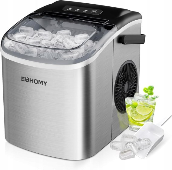 - nazwa przedmiotu: Maszyna do lodu 12 kg/24 h, EUHOMY maszyna do lodu dom, 9 kostek w 6 minut, samooczyszczająca maszyna do lodu, z uchwytem, szufelką, koszem, stalą nierdzewną, 45 dB, srebrna