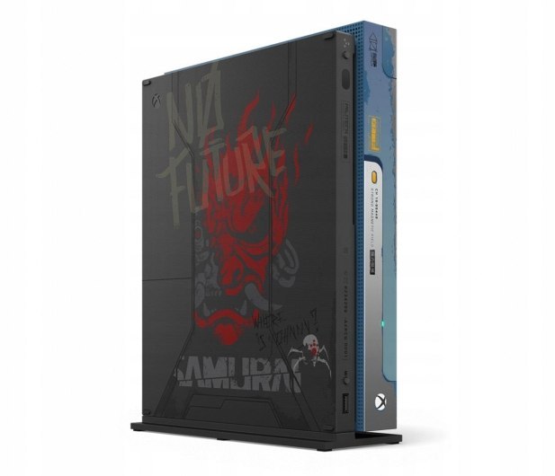 - Konsolę Xbox One X 1 TB w edycji limitowanej Cyberpunk 2077 z pionową podstawką