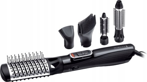 Zestaw posiada szczotkę płaską dla zapewnienia gładkości, która jest idealna do tworzenia naturalnie prostych włosów, okrągłą szczotkę termiczną (21 mm), która stworzy delikatne loki lub fale oraz końcówka Root Boost dla zapewnienia większej objętości. Do włosów o dużej objętości doskonale sprawdzi się okrągła szczotka wysuwana (30 mm) oraz dysza do stylizacji, która umożliwia szybkie suszenie włosów.