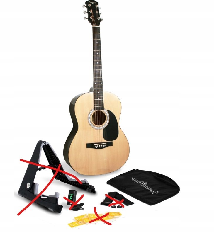 Gitara akustyczna: Gitara akustyczna Martin Smith W101 zawarta w tym zestawie gitary akustycznej ma ergonomiczny korpus drednota, który zapewnia grywalność i ma wykończenie na wysoki połysk.