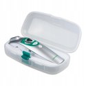 Termometr działa na podczerwień i odczytuje temperaturę z ucha lub czoła. Temperatura może zostać zmierzona również ustnie, metodą odbytniczą lub pod ramieniem. Wynik pokazuje się w ciągu 1 sekundy.