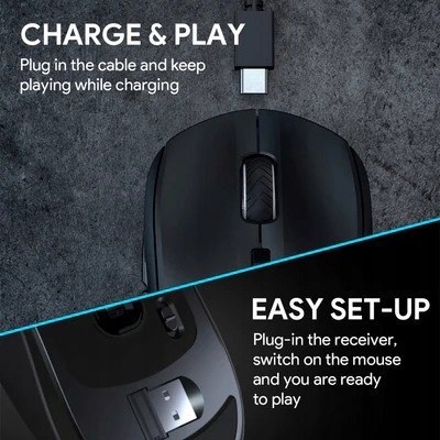Użyj materiału ABS do samej myszy o wytrzymałości do 20 milionów kliknięć. Odległość połączenia bezprzewodowego może wynosić do 10 metrów lub przy użyciu samego kabla z portem USB 2.0 jako złącza i wykorzystuje pleciony nylon jako materiał kabla.