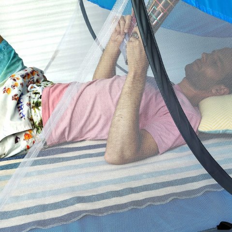 - 2 sekundy na złożenie: dzięki funkcji szybkiego rozkładania w porównaniu do innych namiotów plażowych, niezwykle szybki w montażu.