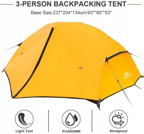 FORCEATT zapewnia idealną przestrzeń dla Ciebie, wystarczającą dla 3 osób dorosłych. Bardzo dobrze jest umieścić jednocześnie 3 podkładki do spania w uniwersalnym rozmiarze. Idealny namiot plecakowy na biwak samochodowy lub wycieczki na świeżym powietrzu.