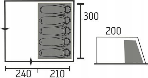Wymiary po rozłożeniu: 210+240 x 300 x h200 cm