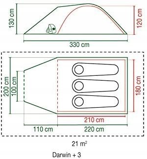 Tylko trójka turystów, a tyle bagaży… Zastanawiasz się, gdzie to wszystko pomieścisz w namiocie, i wyświetla Ci się ponura wizja spania przytulonym do plecaka, w ścisku i duchocie, z dodatkowym pakunkiem uniemożliwiającym rozprostowanie nóg… Darwin 3 rozwieje Twoje czarne scenariusze.