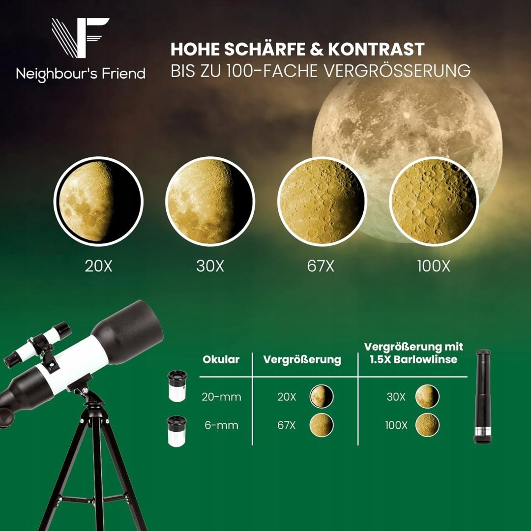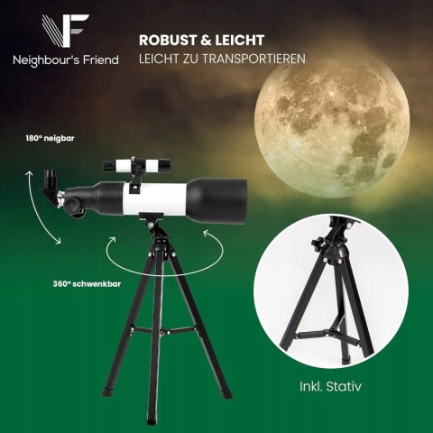 dzięki soczewce obiektywowej 60 mm do teleskopu wpada dużo światła – wysoka wydajność zbierania światła zapewnia ostre i kontrastowe obrazy – idealne dla początkujących i hobbystów.
