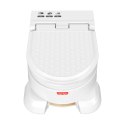 Fisher-Price Nocnik 4 w 1 wygląda jak miniaturowa wersja prawdziwej toalety. Jasna i nowoczesna stylistyka sprawi, że wpasuje się do każdego wnętrza. Nocniczek pomaga dziecku w treningu czystości, wygodne uchwyty zapewniają poczucie bezpieczeństwa, a zdejmowany zbiorniczek ułatwia czyszczenie. Gdy maluch zacznie się już uczyć, jak korzystać z prawdziwej toalety, zdejmowana nakładka nocnika zapewni mu podparcie. Nocniczek zamienia się też w podnóżek, dzięki któremu dziecko bez problemu dosięgnie do umywalki. Świecący przycisk z tyłu aktywuje realistyczne odgłosy spłukiwania toalety. Oprócz tego dwa aktywizujące timery zachęcają dzieci do zdrowych nawyków, takich jak szczotkowanie zębów i mycie rąk.