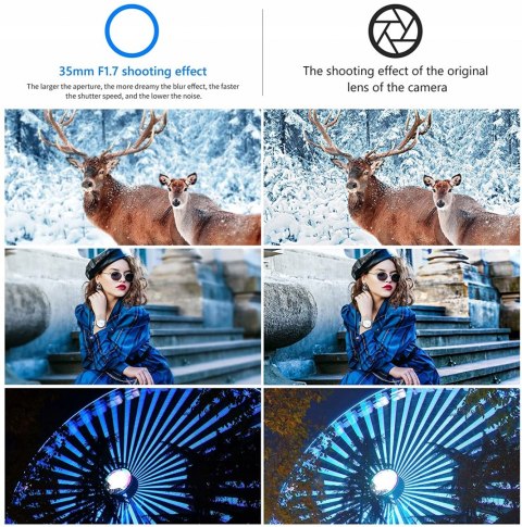 35 mm F/1., 7 stałych szklanek. Ręczna regulacja ostrości, maksymalna przysłona: F/1. 7. Ogniskowa: 35 mm;