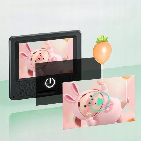 Przenośny i fantastyczny Kompaktowa konstrukcja przenośnego odtwarzacza DVD o przekątnej 7,5 cala umożliwia łatwe przenoszenie go w dowolne miejsce, zabranie go na wycieczki i kemping, stanie się najlepszym towarzyszem dziecka i zapewni nieograniczoną radość z podróży. Odtwarzacz DVD YOTON jest również popularnym wybór prezentów dla rodziny i przyjaciół.