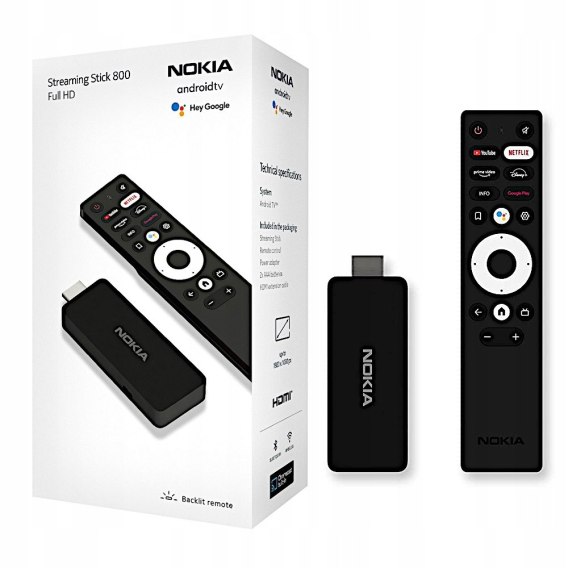 Odtwarzacz multimedialny Nokia Streaming Stick jest wyposażony w pilot, dzięki czemu Twoje ulubione aplikacje są zawsze pod ręką. Podświetlane przyciski pilota ułatwią Ci znalezienie odpowiedniego przycisku, nawet gdy w pomieszczeniu jest ciemno.