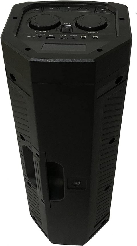 Potężny: niezawodnie brzmi nawet w dużych pomieszczeniach lub na imprezach plenerowych. Dwa 6,5-calowe głośniki szerokopasmowe i dwa 2-calowe głośniki wysokotonowe o łącznej mocy muzycznej 500 watów.