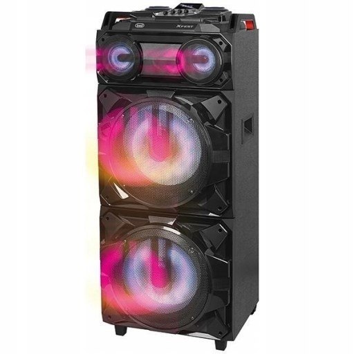 TREVI XF 3800 Pro to kompaktowy power audio z funkcją karaoke oraz z bezprzewodowym głośnikiem XP 71 w zestawie. Wysoką jakość odtwarzanego dźwięku zapewni podwójny 12-calowy subwoofer oraz podwójne 3-calowe głośniki o wysokiej wydajności. Maksymalna moc zestawu to RMS 300W.