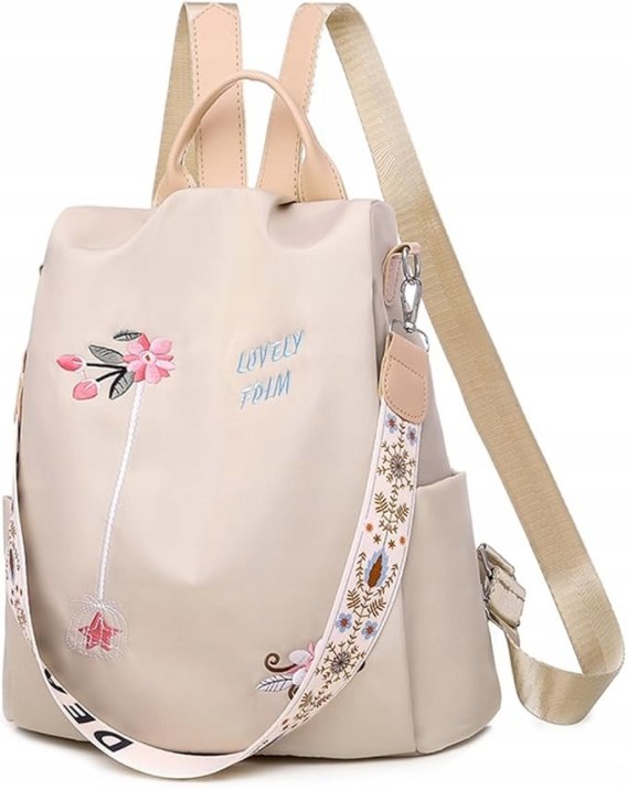 Plecak antykradzieżowy 2 w 1 Balakaka kolor jasmu khaki wzór kwiaty