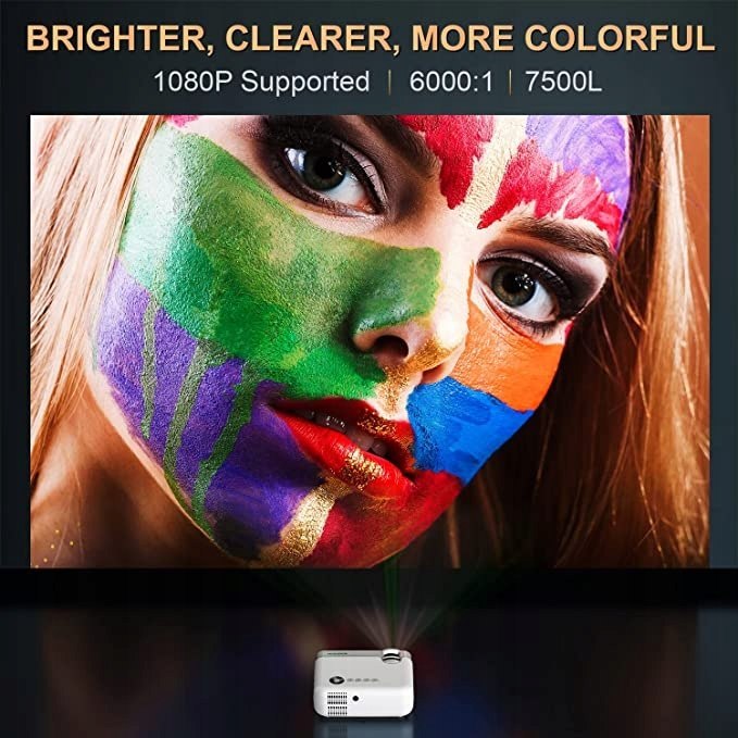 powiększenie 75%, projektor LED na iOS, Android, Fire Stick, laptop, PS5