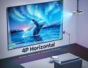 - Wyraźne napisy do filmów, wideo i gier są wyświetlane nawet na największym ekranie o przekątnej 300 cali z rozdzielczością 4K 1080p HD, współczynnikiem kontrastu 10000:1 i jasnością 8000 lm.