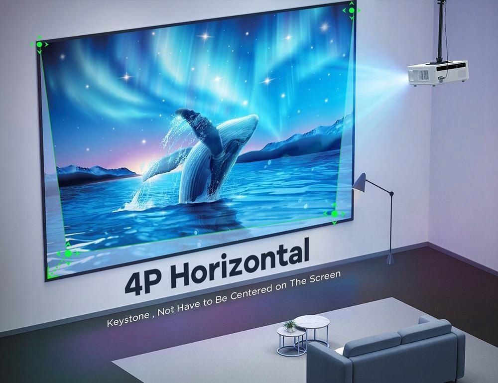 Jest to ulepszona korekcja trapezu 4P. Korekcja trapezu 4D może regulować tylko kierunek pionowy lub poziomy, podczas gdy czteropunktowa elektroniczna korekcja trapezu ± 40 ° może uświadomić, że cztery rogi obrazu można regulować osobno, co jest bardziej praktyczne i wygodne.