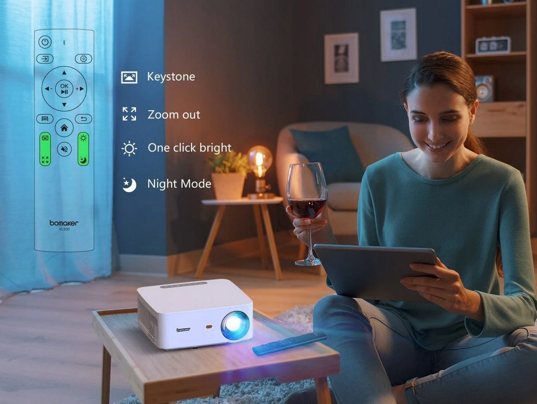 Jednocześnie posiada funkcję zoom, a za pomocą pilota można zmniejszyć rozmiar obrazu o 60% bez przesuwania projektora. Wesprzyj rzut boczny, pomieszczenie nie jest wystarczająco duże, a odległość nie jest wystarczająco duża, więc nie martw się. Pozwól cieszyć się wizualną ucztą w dowolnym miejscu pokoju, dając Ci największą wygodę!