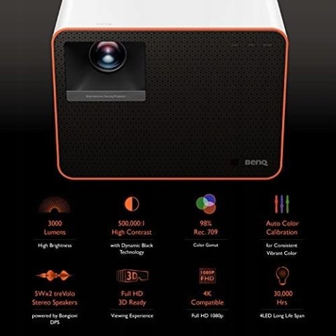 - 3000 ANSI lumenów LED o wysokiej jasności, 98% Rec.709, zgodność z grami HDR
