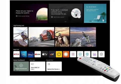 System webOS 6.0 umożliwia oglądanie programów telewizyjnych i filmów przy użyciu prostego połączenia z siecią Wi-Fi. Dodatkowo fabrycznie zainstalowane aplikacje, takie jak Netflix, Amazon Prime Video, Disney+, YouTube i Apple TV, pozwalają na wygodne oglądanie treści.