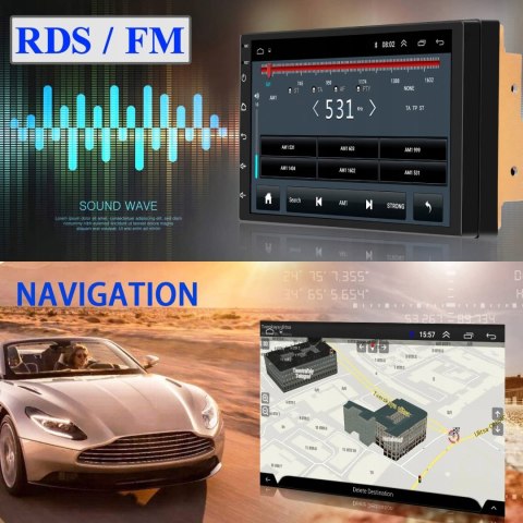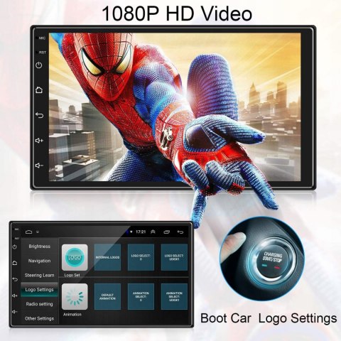 Wejście/wyjście / ustawienia multimediów】: Wejście: USB (podwójny) / mikrofon / kamera cofania (w zestawie) / rejestrator jazdy (nie wchodzi w zakres dostawy). Wyjście wideo / audio: wyjście audio 4 x 60 W / wyjście wideo RCA. Można skonfigurować różne efekty dźwiękowe i style muzyczne, takie jak pop, rock, jazz itp. Ten 7-calowy system radiowy z systemem Android ma wbudowane logo dla prawie wszystkich samochodów jako logo startowe.