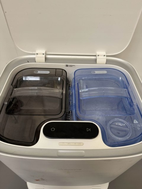 Gdy pady ulegną zabrudzeniu, Dreame W10 automatycznie wraca do stacji dokującej. Pady są spryskiwane wodą, a następnie szybko obracają się w małych rowkach, usuwając brud. W międzyczasie dysza znajdująca się w dolnej części stacji dokującej odprowadza brudną wodę do zbiornika, aby zapobiec zanieczyszczeniu.