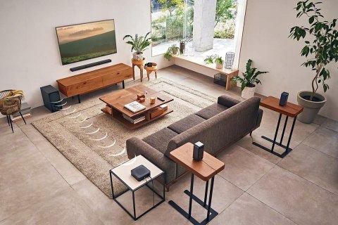 Bezprzewodowy wzmacniacz dźwięku kierowanego do tylnych głośników eliminuje przewody ciągnące się przez cały salon. Subwoofer i soundbar mogą czerpać zasilanie ze wspólnego źródła, dzięki czemu uzyskanie kinowego dźwięku nie wiąże się z bałaganem ani skomplikowanymi połączeniami.
