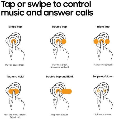 Obsługa słuchawek Gear IconX (2018) jest niezwykle prosta i intuicyjna, a to za sprawą wbudowanego panelu dotykowego. Za jego pomocą, bez trudu przełączysz się miedzy utworami oraz płynnie wyregulujesz głośność. Poznaj wszystkie funkcjonalności - Dotknij i przytrzymaj panel, aby usłyszeć przewodnik audio. Kiedy usłyszysz pożądaną opcję jak na przykład: odtwarzanie muzyki, odbieranie i odrzucanie połączeń lub tryb odgłosów otoczenia - podnieś palec, a zostanie aktywowana.