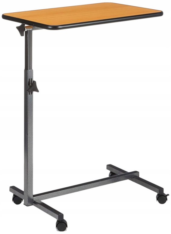 Stolik przyłóżkowy Easy to bardzo pomocny sprzęt, który ułatwia opiekę nad osobami obłożnie chorymi i stale leżącymi. Pozwala na komfortowe zjedzenie posiłku bez konieczności wstawania z łóżka, ale może posłużyć również jako półka na najpotrzebniejsze rzeczy czy podstawka pod laptopa lub książkę. Laminowany blat z podwyższonymi krawędziami zabezpiecza przedmioty przed zsuwaniem się. Można regulować jego nachylenia bezstopniowo do 45°, a dokonuje się tego za pomocą wygodnej śruby z mechanizmem zaciskowym. Dodatkowo blat posiada możliwość poziomego wysunięcia względem podstawy.