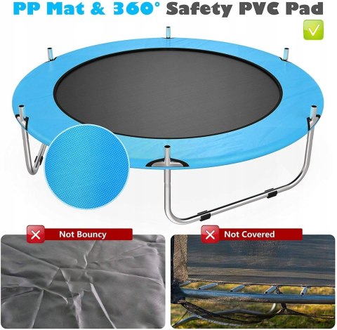 Stabilizuje górną ramę obudowy ramy trampoliny i zapobiega skręcaniu konstrukcji. Wykonana na miarę solidna siatka zabezpieczająca wykonana jest z gęstej tkaniny o wysokiej gęstości, nici PE poddanej obróbce UV.
