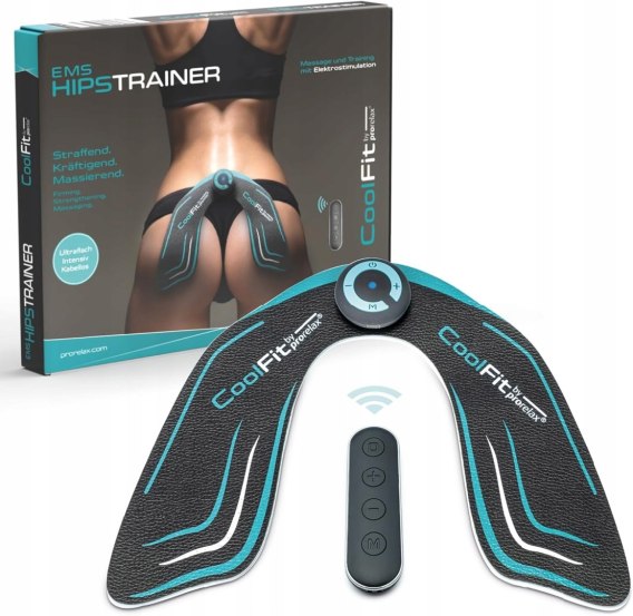 Sprytny sposób na wyrzeźbienie pośladków i bioder. Aktywne kobiety lubią dbać o dobrą sylwetkę przez cały czas, nie tylko na początku sezonu kostiumów kąpielowych. Ale jeśli nie chcesz męczyć się w studiu fitness, istnieje wygodna alternatywa. Urządzenie Cool Fit EMS Hips Trainer firmy Prorelax pomaga ćwiczyć, modelować i rozluźniać problematyczne strefy – pośladki i biodra. To innowacyjne urządzenie firmy Prorelax ma atrakcyjny wygląd i sprawia, że efektywny trening staje się przyjemnością. Możesz używać urządzenia Cool Fit EMS Hips Trainer w domu lub w podróży. Wzmacniaj lub rozluźniaj pośladki i biodra dzięki 15 poziomom intensywności. Dzięki temu jesteś niezależny i możesz cieszyć się intensywnym treningiem w dowolnym momencie. Regularne ćwiczenia dla pełnego relaksu. Urządzenie Cool Fit EMS Hips Trainer to nowoczesna, oszczędzająca czas metoda intensywnego treningu pośladków i bioder bez wysiłku. Posiada funkcje ugniatania, głaskania i wibracji. Może również generować nacisk dłoniami, drapanie i ucisk palcami, podobnie jak masażysta. To praktyczne urządzenie sprawia, że ćwiczenia stają się cudownie proste i pomaga po prostu czuć się dobrze i być dumnym ze swojego ciała. Można go bez wysiłku używać za pomocą pilota i ładować za pomocą kabla USB. Zalecenia dotyczące optymalnego treningu. Używaj Prorelax Cool Fit EMS Hips Trainer raz dziennie podczas sesji trwającej 25 minut. Wzmacnianie i kształtowanie z innowacyjną technologią EMS. W elektrostymulacji mięśni (EMS) skurcze mięśni są generowane za pomocą impulsów elektrycznych. Impulsy symulują potencjał czynnościowy ośrodkowego układu nerwowego, który jest odpowiedzialny za skurcz mięśni. Udowodniono, że EMS jest skutecznym narzędziem proaktywnego wzmacniania mięśni. Do czego służy EMS? Wzmacnianie mięśni Rehabilitacja Zapobieganie degradacji mięśni z powodu braku aktywności Rozluźnienie mięśni Kosmetyczny ton mięśni.