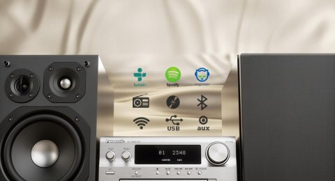 Cała Twoja muzyka z jednego urządzenia SC-PMX152 obsługuje szeroki wybór internetowych radiostacji i usług streamingowych — od Spotify poprzez Tunein do Aupeo. Można też odtwarzać muzykę z dysku USB lub bezprzewodowo przez Bluetooth lub Wi-Fi. To doskonałe urządzenie, by ponownie przesłuchać swoją kolekcję MP3 lub odkrywać nową muzykę.