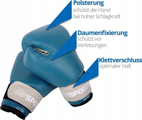 Specyfikacje rękawic bokserskich: Rozmiar:12 uncji, materiał zewnętrzny:100 % poliuretan,