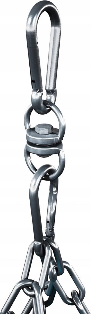 Worek bokserski jest zawieszony na wytrzymałym nylonowym pasku i solidnym 5-punktowym stalowym łańcuszku.