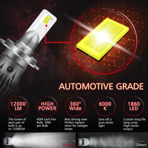 Żarówka LED H7, Koyoso 60 W, 12000 lumenów