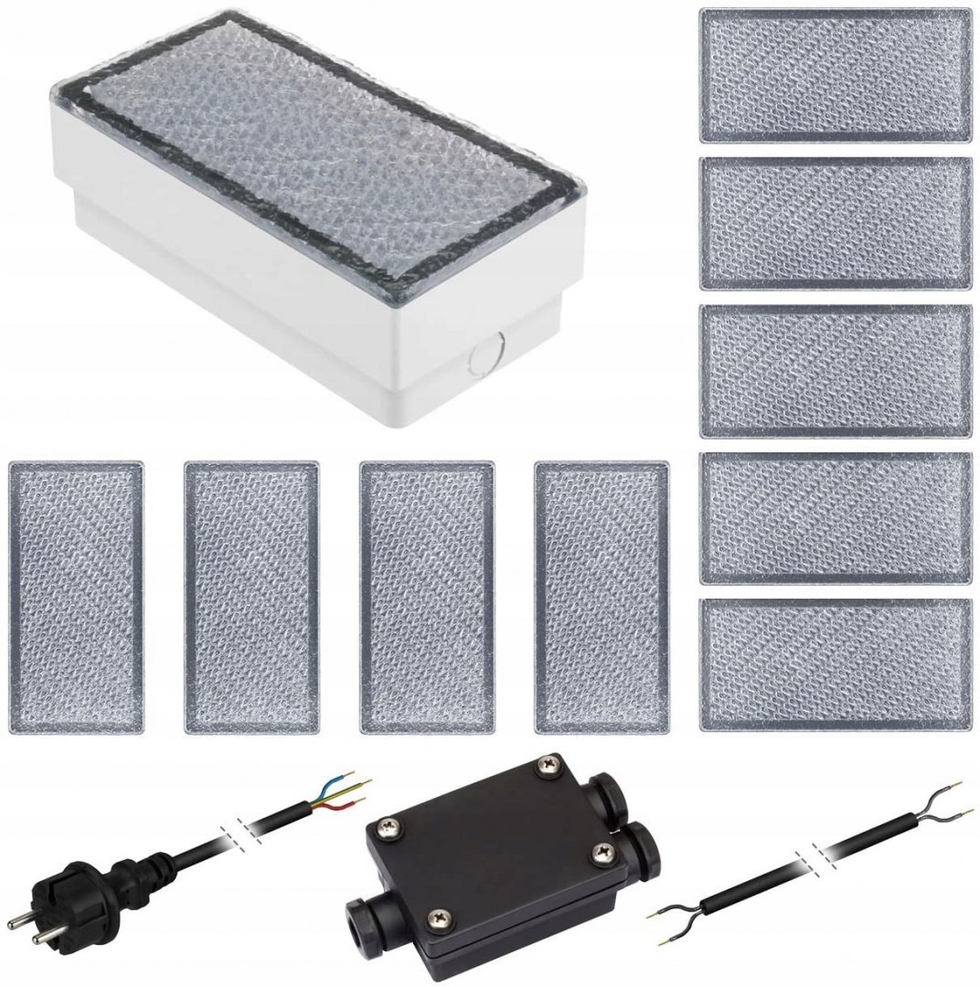 10 x kostka brukowa LED z 1 m kablem LC-EL-054-WW, 8x podwójna skrzynka przyłączeniowa LC-SS-116, 25 m kabel zewnętrzny LC-SS-166, 2 m kabel z wtyczką SchuKo (do bezpośredniego podłączenia do gniazdka) LC-SS-136