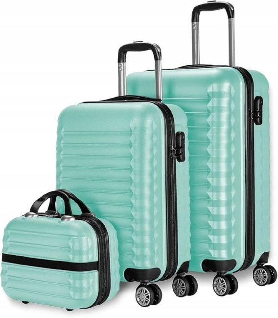 NUMADA Zestaw walizek sztywnych 3 szt. - średnia 63 cm, duża 75 cm i kosmetyczka. Wytrzymały, lekki i bezpieczny, Miętowa zieleń,